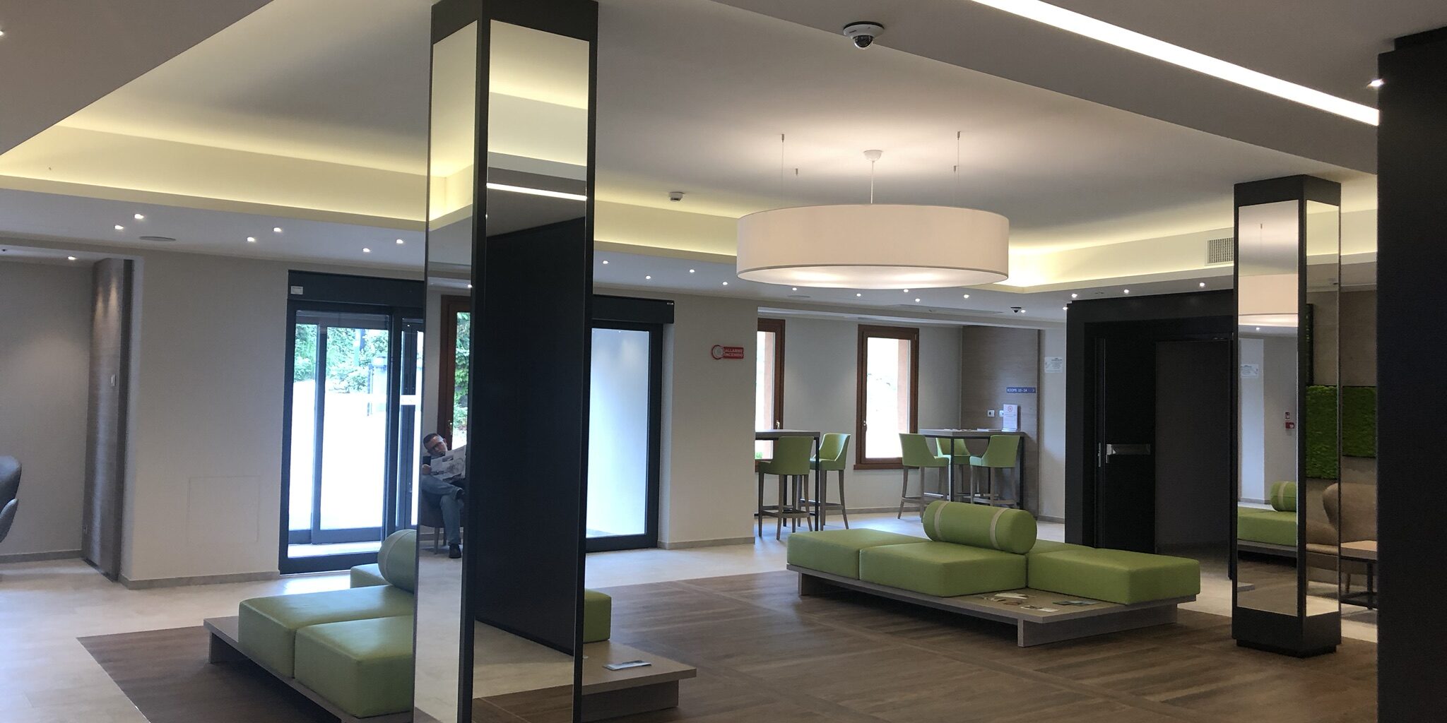 Le soluzioni tecnologiche adottate da Duebi Impianti Srl per le realizzazioni in ambito alberghiero sono finalizzate a permettere il controllo da remoto degli impianti e una gestione intelligente della struttura e delle camere.